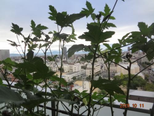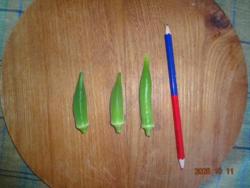 オクラ日記、3個収穫、累計112個。4輪開花。
