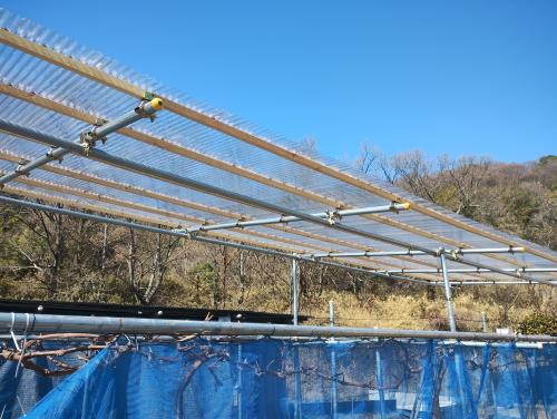 ブドウの雨避けをどうするか…。