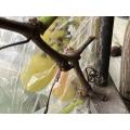 赤くはならなかったが、ついに収穫した。今年初なりで、まともなのはこのひと房だけ。しかも粒の数がかなり少ない。やはり枝葉の数が影響したとみえる。黒痘病にはならなかった。これは薬剤散布を割と励行できたことと袋に入れていたため。