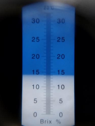 初なりゆえか、糖度は15弱しかなかった。かなり水っぽい。赤くなるまで長く待っていたが、結局この色のまま。赤くなるともう少し味はよくなるのかもしれない。