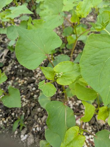 この小さい小さい花がきれいなもので… 思いの外早く咲いたなぁと。 霜で枯れるの待てばいいやと思ってたけど、それ待ってたら春になったらそばの芽まみれになっちゃうな…ツユクサとチヂミササの根がすごいからそばのアレロパシーで1度追い出したいんだけど… かわいそうだけど花だけパチパチおとしていくことにした。 来月くらいは蕎麦の実大量に散ってそうだけど 苦笑