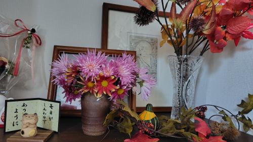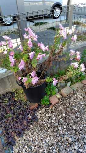 大切に育ててきた食用菊、もってのほかが 満開になった。 だけど 庭の野生化したもってのほかはもっと満開で もうたくさん食べたし、 冷蔵庫の中にも酢の物がいっぱいある。 少しありがたみが減ってきてしまった。 少しずつ切り花にして飾ろう。