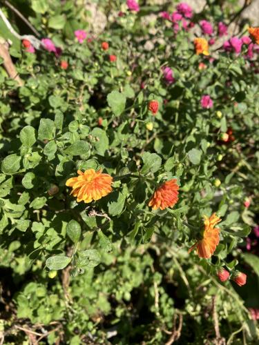 ピンク色の花に続いて、オレンジ色の花も咲きだした。