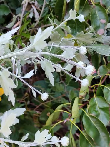 昨秋、一昨年とよく咲いていたオレンジの株がバカな家族がまた切りやがったせいでほとんど枯れ、イソギクだけ残ってる。