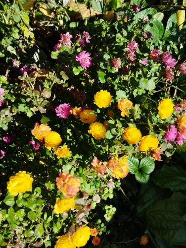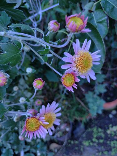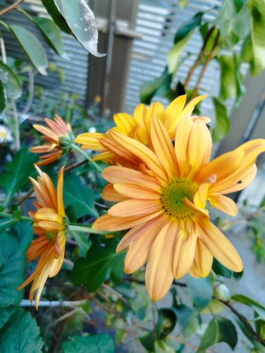 一昨年買ってきたオレンジ色の花も開花していた。イソギクや小菊も元気だ。