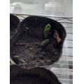 置き場所は部屋の中の水槽にカボチャ苗と並んで越冬です。