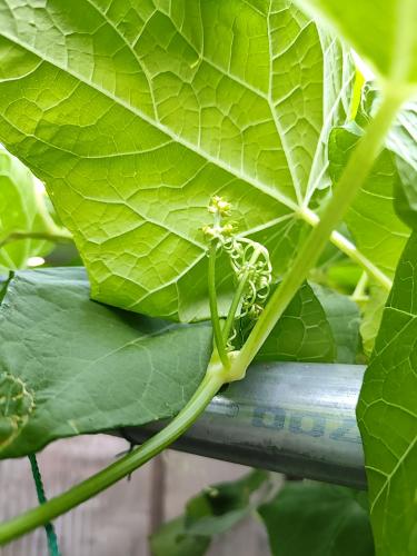 涼しくなってきて、ハヤトウリが元気になってきました。 花も咲いてきました。 株はいつの間にか巨大化してます。 沢山収穫できると良いです。