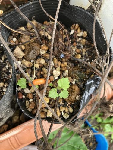 またしても根腐れで親株はダメになったが、なめくじにやられて放置していた実から落ちたらしき種から次世代のやつが出ていた。何もしなくてもこの品種は種からできるはず。