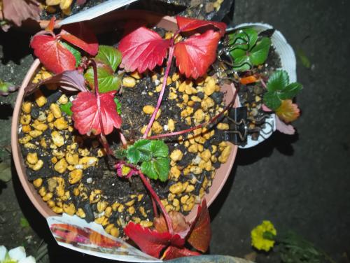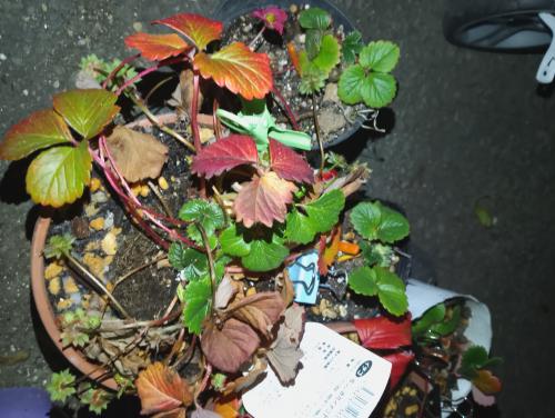 タイトル通り。コーナンで今月二つの苗を買ってきた。一つあたり税込み200円。ランナーがついていたが、(たぶん土に着地せずにずっとこうだったようで)根が短く丸く縮んだようになっていた。根付くかいまいち不明だが、とにかく嬉しいのでビニルポットを用意して親株と同じ土にてその根をのっけた。肥料焼けをしやすいとか聞くので、用土はなるべく肥料から離している。しかし、鉢が小さいし限界がある。なお、肥料はコメリに売っていた粒状イチゴの肥料、よく見かけるIB肥料(割に大きい、丸い玉のやつ)、骨粉や油かすなどの配合された有機肥料を使った。堆肥も割と多めに入れた。