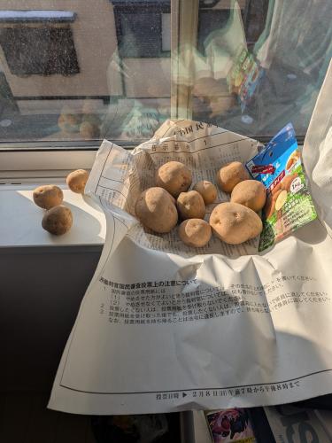 日光に当てようと思ったら早速小さい芋3つカビっぽい…幸先悪い…