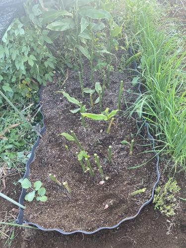 少しずつ、枯れた葉切りをしていますが、未だに新芽も生えてる様子。 小さめだけどミョウガもチラホラ生えてるし、まだ収穫出来るみたい。 しかし、根がもうビッシリ!さすがに今年は間引きしないとダメそう。