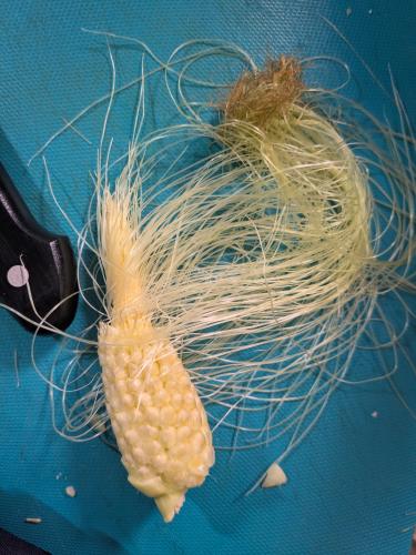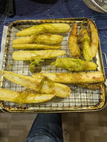 失敗してサクサクにあんまりならんかったけど、ヒゲの香ばしい…コーンは芯まで食べれて甘い…