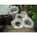 葉ネギ、播種61日目の様子。傘袋に2株ずつ移植しました。