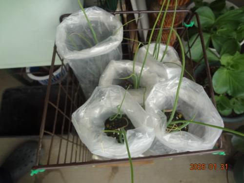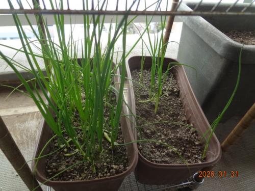葉ネギ、播種86日目の様子。寒いのもあって大きくなりません。