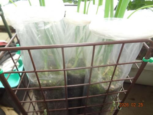 葉ネギ、播種111日目の様子。これは傘袋栽培です。まもなく増し土します。
