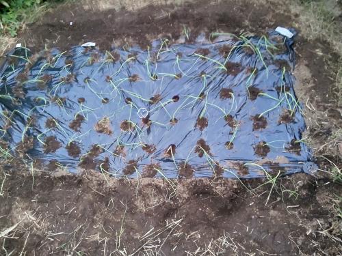 去年収穫した球根を探したら、一本だけ残っていた。 剥いてみたら、球根は3個だけ。 あんまり、ニンニクは使わなく、実家からももらうので、 タマネギの脇に植え付け。
