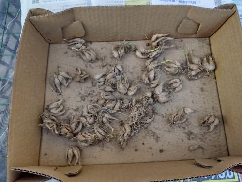 20年以上アサツキのを作っている。 今年春収穫した球根をネットに入れ、地下車庫で保管している。 毎年、芽が出ているが今年は芽が出ていない。 よくみたら、球根の水分がなくなってスカスカ。 とりあえず植えてみた。