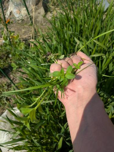 条間に指入れて柔らかく触れる草を引っこ抜くとまだまだカヤツリグサ、スズメノカタビラ…あとよくわかんない草…花のこぼれ種からのものかな?
