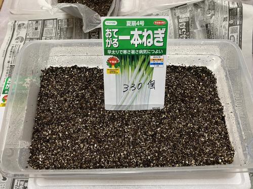 長い一年間の白ネギ栽培スタートです♪♪♪♪♪ 友人への提供分も一緒に2個のトレーBoxへ330個づつスジ撒き。 コタツで発芽待機です(笑