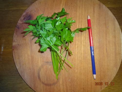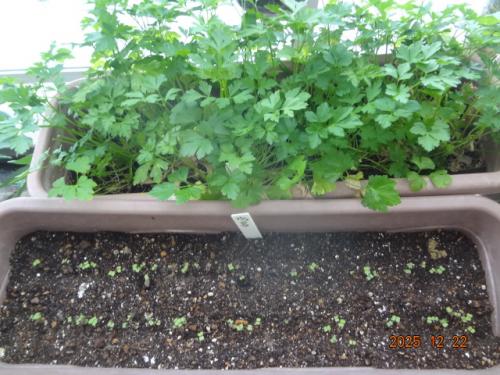 イタリアンパセリ、収穫しました。インスタント焼きそばに合います。次のルッコラ、播種7日目、発芽してます。