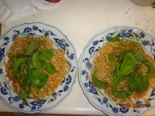 ルッコラ、播種50日目、収穫しました。昼、インスタント焼きそばトッピング。