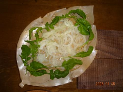 ルッコラ、収穫しました。フライの皿に使います。