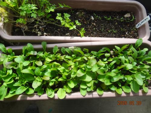 ルッコラ、イタリアンパセリの様子。ルッコラ14日目、67日目です。イタリアンパセリ40日目です。