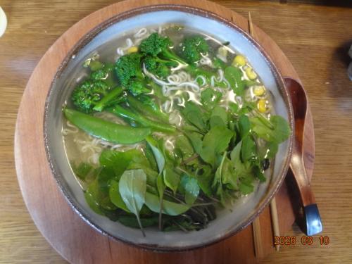 ルッコラ、収穫しました。とう立ちしてきました。ブロッコリーと一緒にラーメンでいただきました。