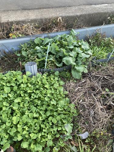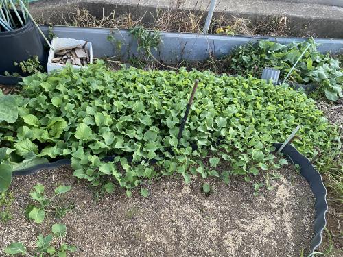 自然サイクルしている「のらぼう菜」こと、野良坊菜です。 密集し過ぎてキモいです。でも、暫くこのまま競わせます。