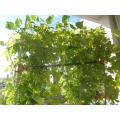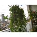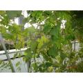 シカクマメ、播種48日目の様子。子ツルを剪定しました。ハダニ対策にアーリーセーフとホースの先をカクサンにして水で吹き飛ばしました。