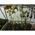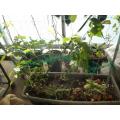 シカクマメ、播種48日目の様子。子ツルを剪定しました。ハダニ対策にアーリーセーフとホースの先をカクサンにして水で吹き飛ばしました。