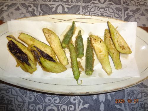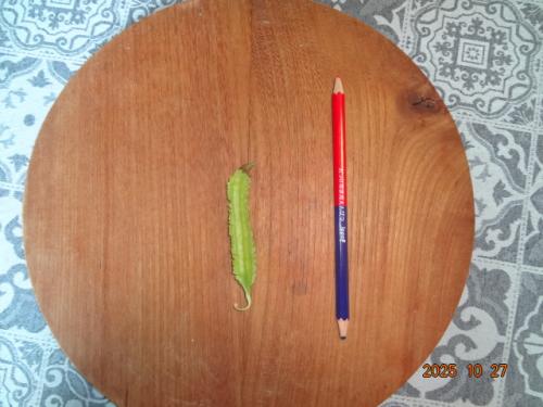 シカクマメ、1個収穫、累計12個。ナス、オクラと一緒に揚げていただきます。