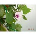 紅はるか、定植20日目の様子。プランターからはみ出るのでネットへの誘引を始めました。