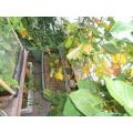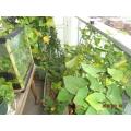 紅はるか、プランターに定植しました。キュウリが終了したプランターにペットボトル苗を移植しました。ネット垂直栽培。