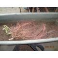 紅はるか、46日目、定植しました。プランターが空いたのでペットボトルの苗2株を移しました。ネット垂直栽培の予定です。