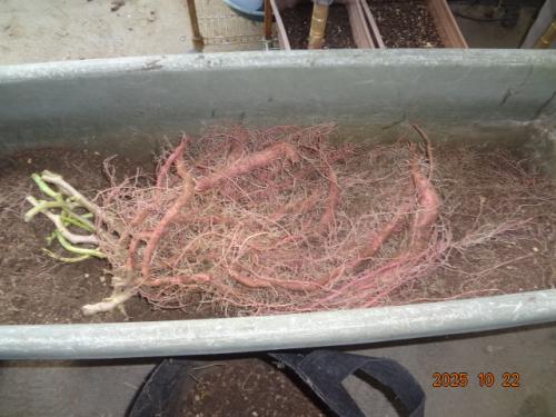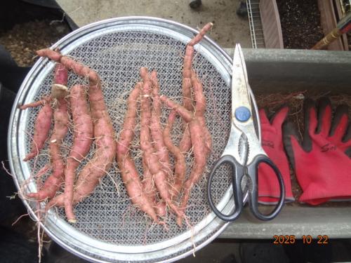 紅はるか、定植101日目、撤収しました。残念ながら、ひも状の「さつまひも」でした。料理しにくいですがいただきます。