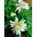 ガーベラも適当に育ててるのに、強健で頼もしい。草丈はかなり低い。花色はこの株は白っぽいピンクで、売れ残っていたやつだが、鮮やかな色のもホームセンターなんかでは見かける。