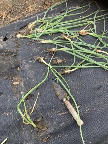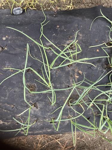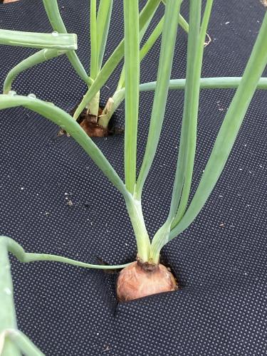 玉ねぎマルチに浅植えして