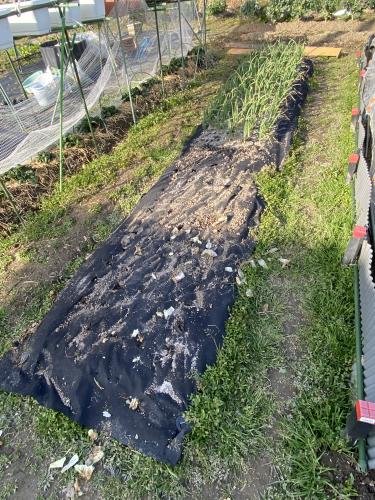 玉ねぎマルチに浅植えして