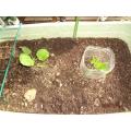 富士早生、定植しました。プランターが空いたので、本葉4枚の苗、間引かずに定植しました。