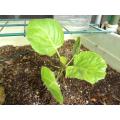 富士早生、播種32日目の様子。ブロッコリーと比べると生育が遅く、定植はまだ先です。