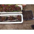 3月に蒔いたサニーレタス、プランター、畑、庭の脇に植えた仲間たちは大きくなりとう立ちし始めている。4連ポットのまま残っていた苗をプランターに植え付け。