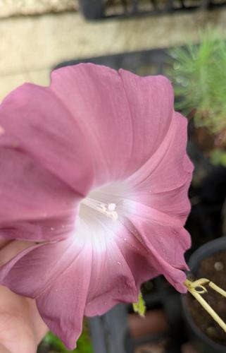 去年晩秋に採取した江戸朝顔・団十郎を、朝顔の勉強のため早蒔きしました。 2回目・3回目の播種は種が古くて発芽しませんでした。 写真は秋に咲いた団十郎です。