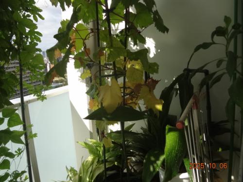 シャインマスカット、紅葉してきました。