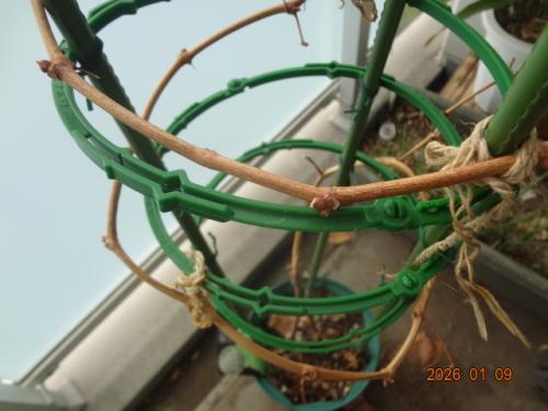 シャインマスカット、剪定しました。下から20節ほど残して、コンパクトにしました。枯れ木に見えますが、すでに、春に芽吹く準備しているのが分かります。