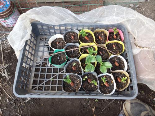 昨年収穫種を蒔いたを18個蒔いたが、10本ほど芽が出てきた。 あと、4本ぐらい出るかな。