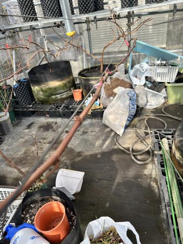 これは2/3が延長枝。 今年はこれの結果枝に巨峰を継いでみようかと。 場所を節約してアレキ導入予定。
