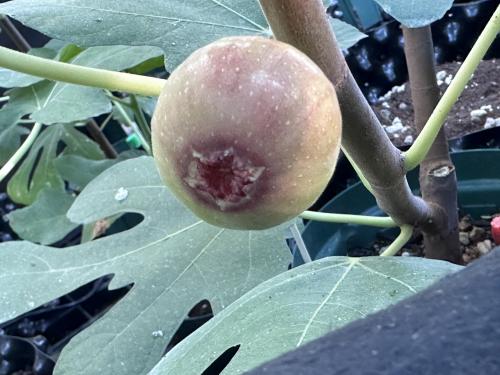 あっという間に色付いて来ています。 思ったより目が大きいので保護。 黒イチジクなのでこの後、真っ黒になるでしょう。