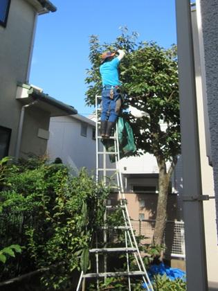 2025年11月4日 ーーーーー 植木屋さんに柿の木を選定してもらう 今年の柿は70個ほどと少ないが、大きいようだ