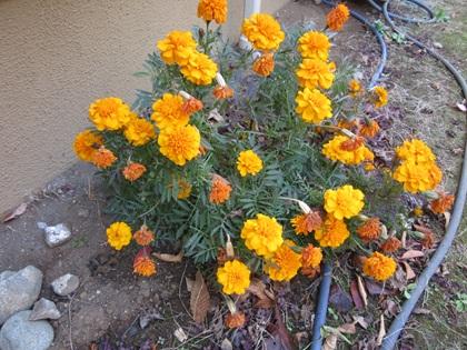 2025年12月30日 ーーーーー 前日まで風が強くて寒かったが、今日は穏やかだ 冷え込んでからほとんど庭に出なかったが、久しぶりに庭をぐるりとしたら、クリスマスローズが咲いていた。 マリゴールドは夏からずっと咲き続けだ。